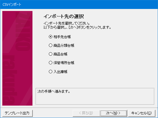 CSVインポート画面