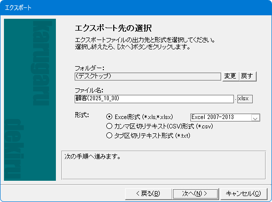 また「かるがるできる顧客」のデータは、Excel、CSVなど各種形式へのエクスポートが可能です。入力したデータを幅広く活用することができます。