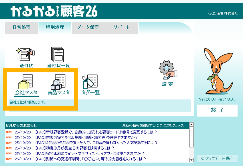 各種台帳では、会社や商品の検索・編集などの操作を行うことができます。