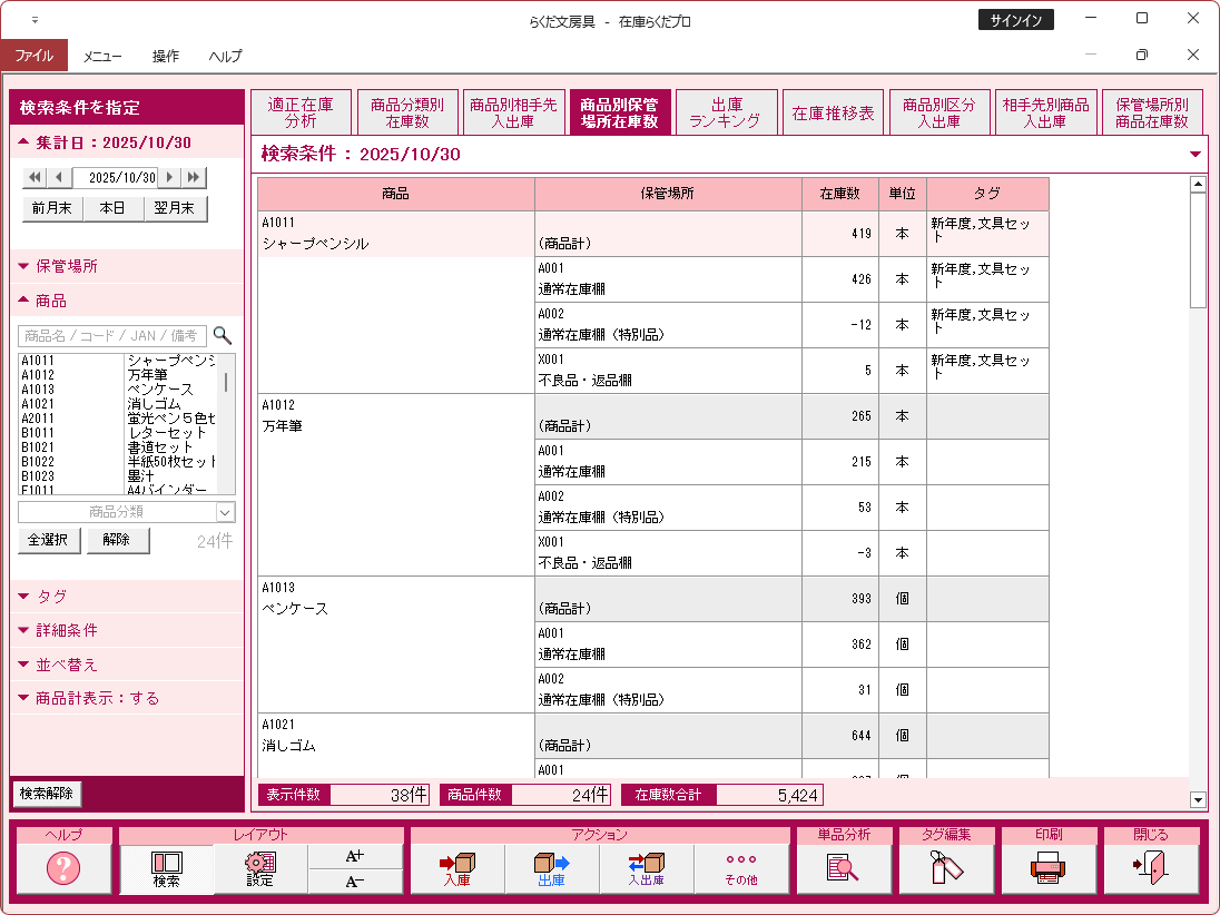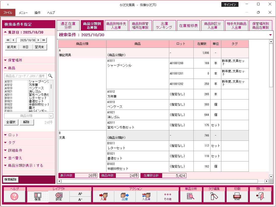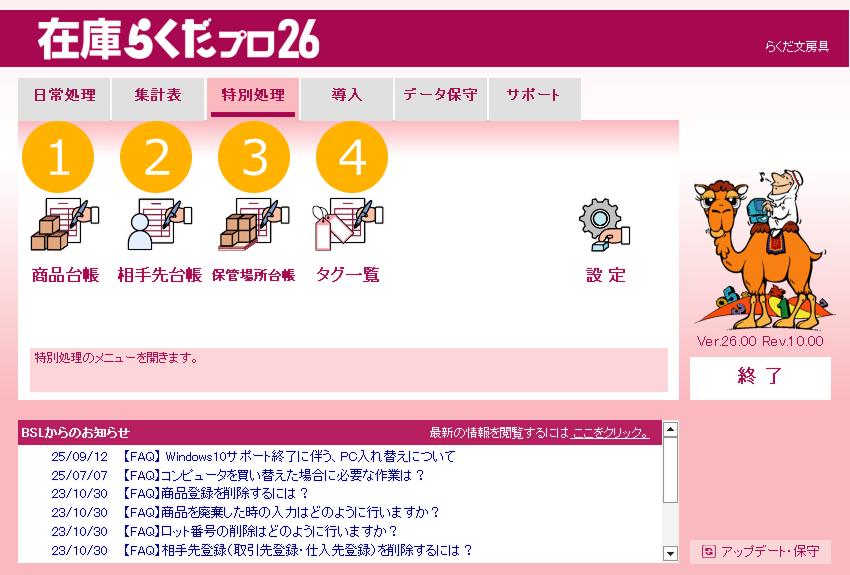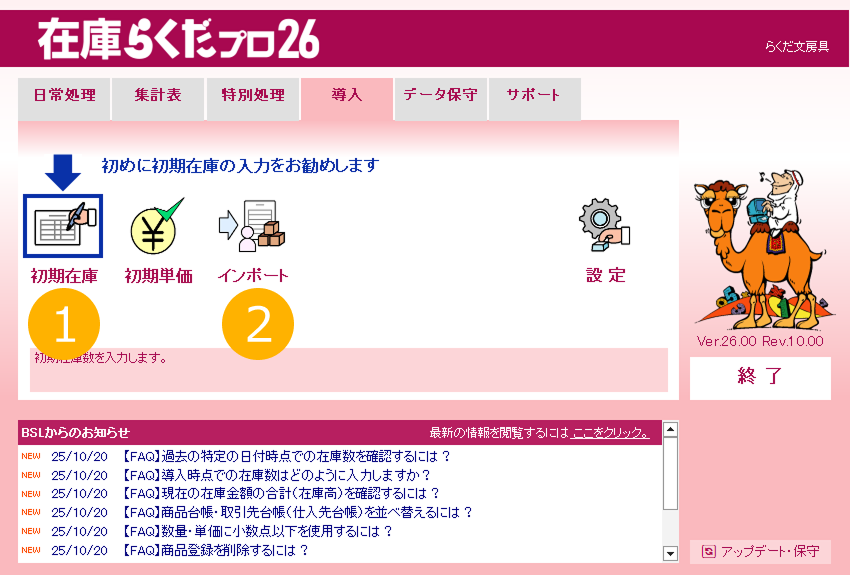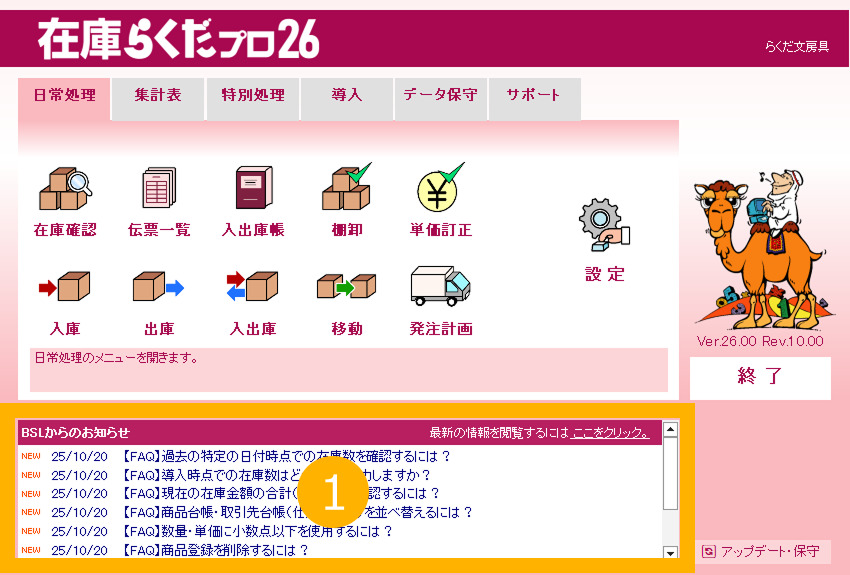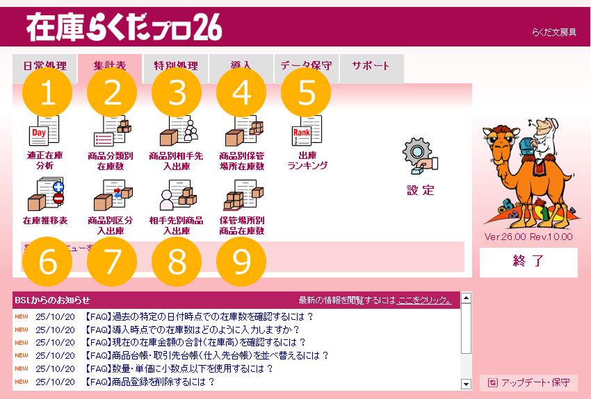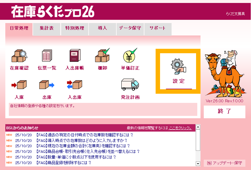 特に注記がない場合、画面は「在庫らくだプロ」で説明しています。
