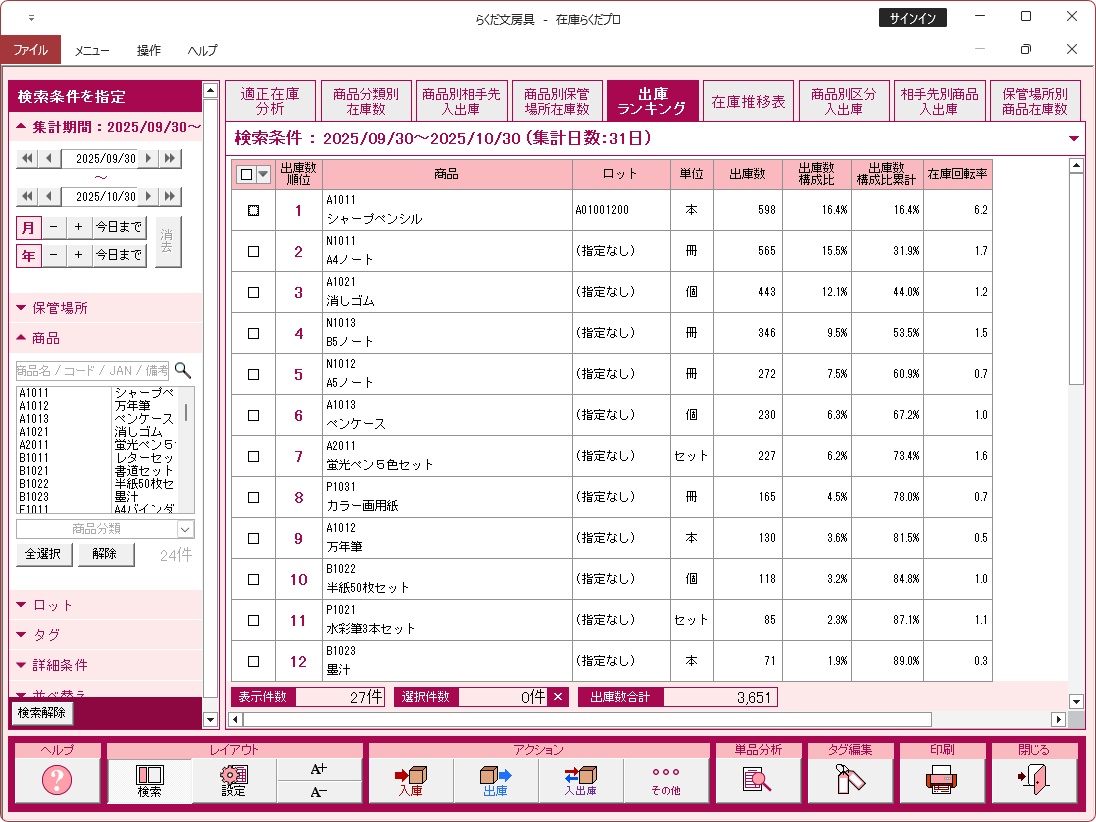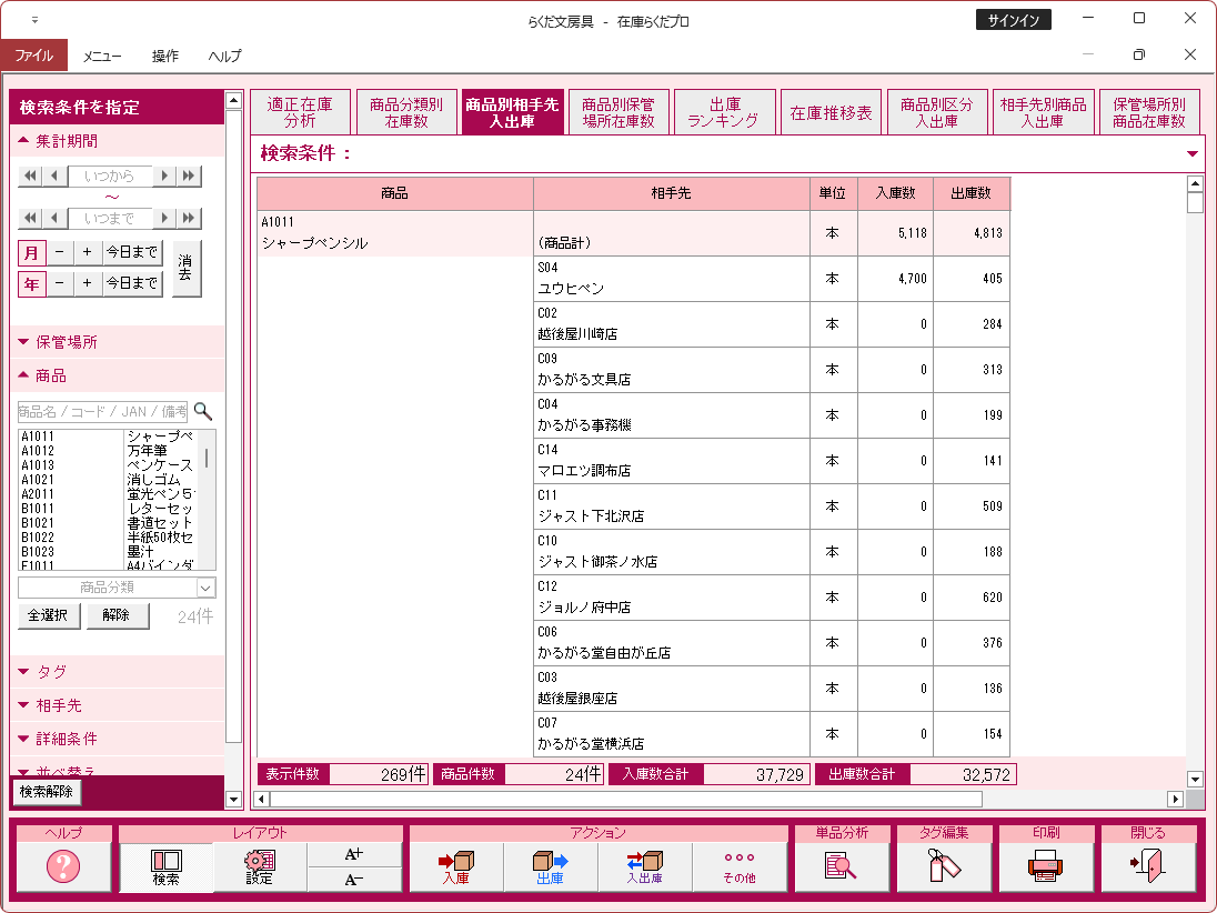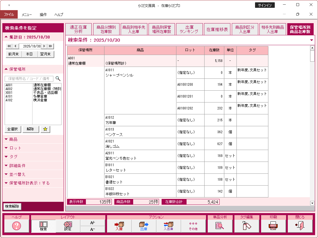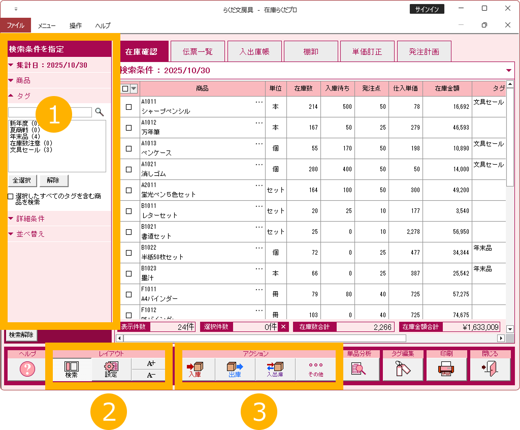 特に注記がない場合、画面は「在庫らくだプロ」で説明しています。