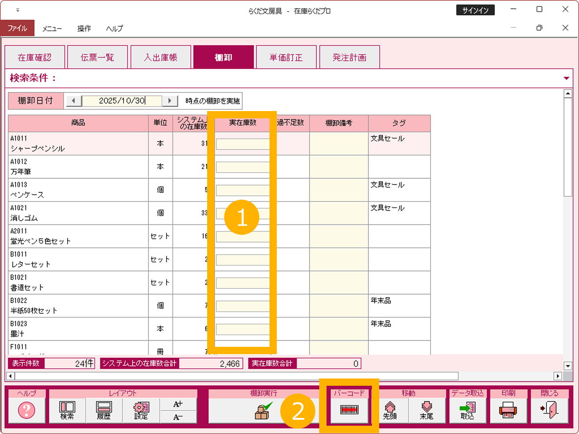 1.棚卸入力画面