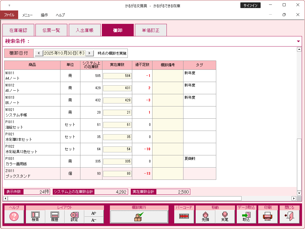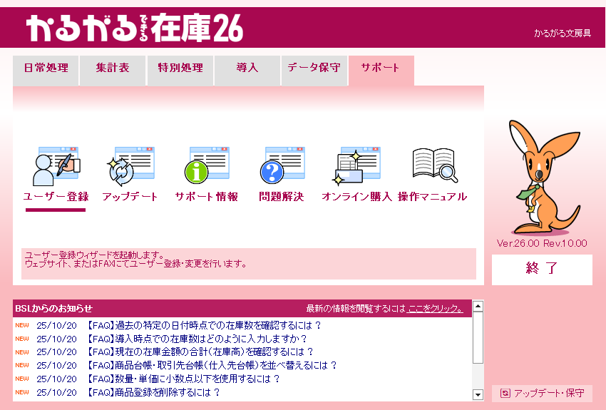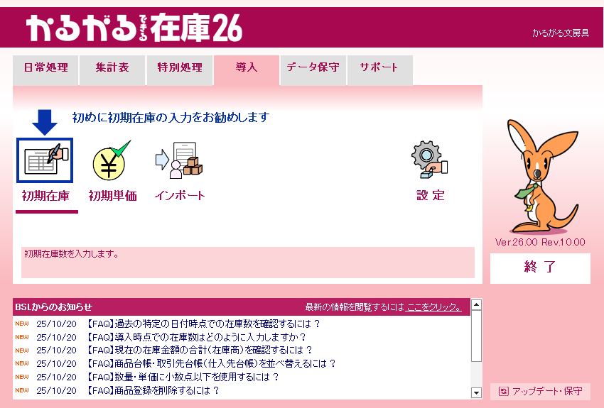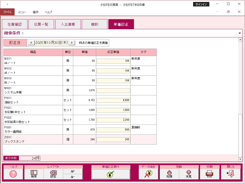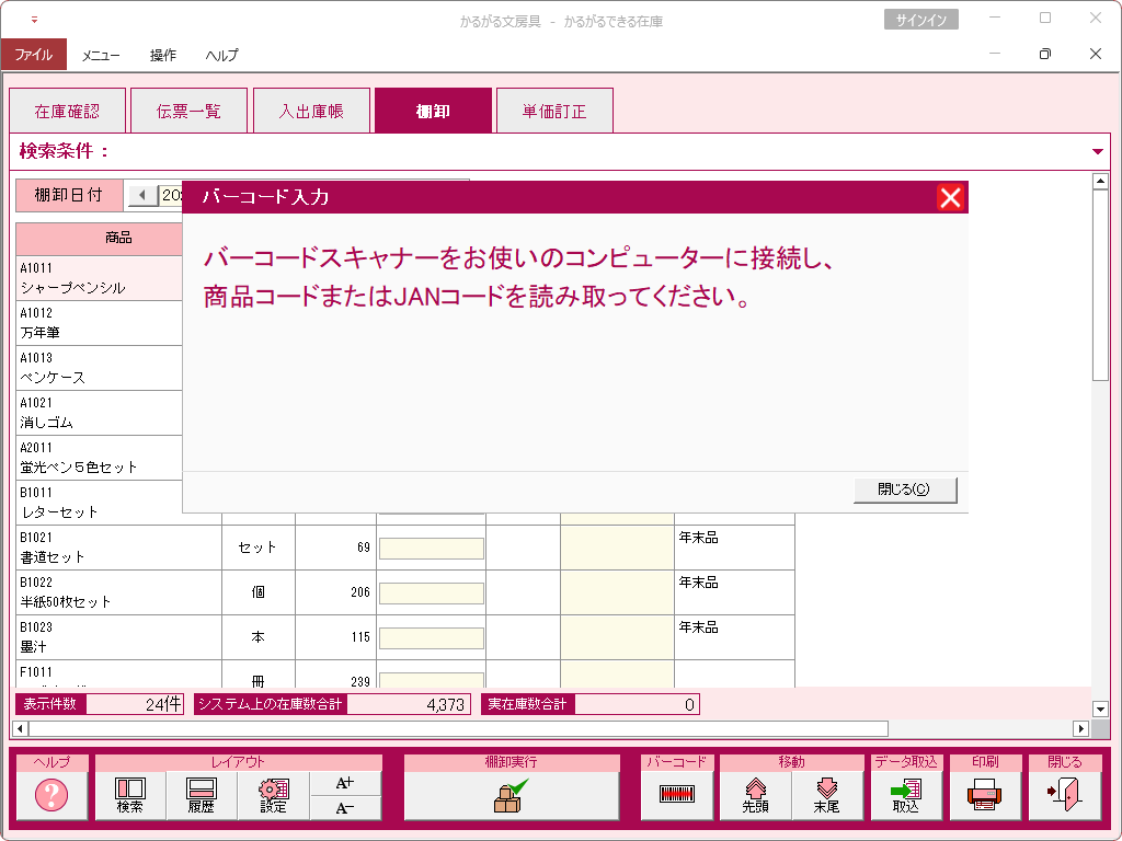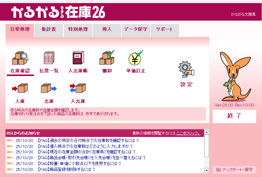 かるがるできる在庫26の操作画面集は以下からご覧ください