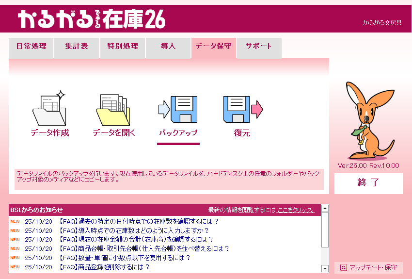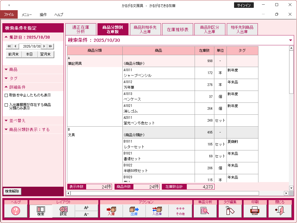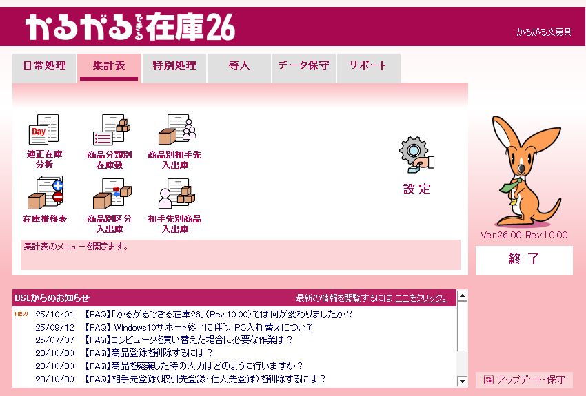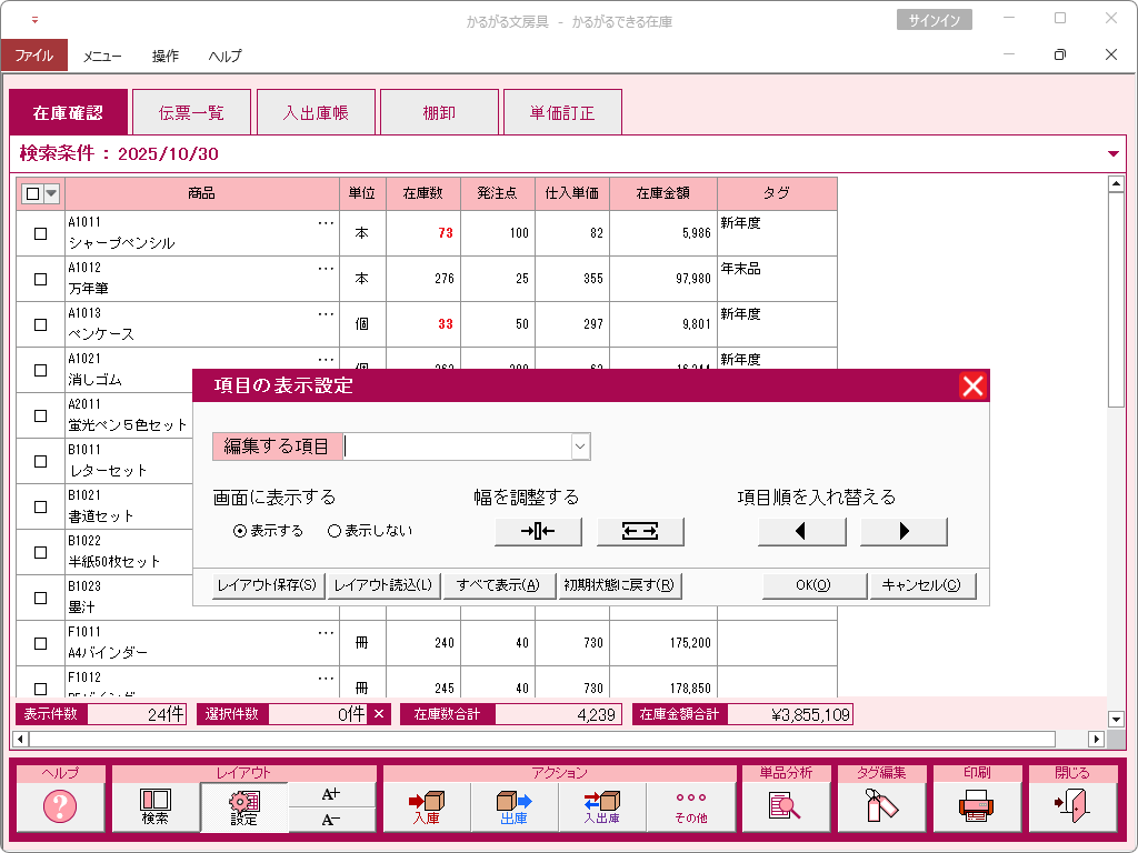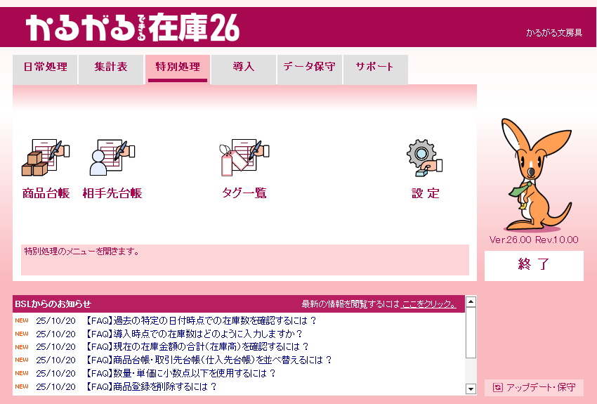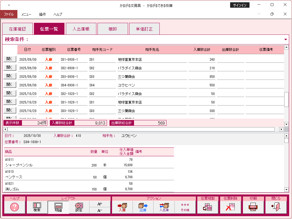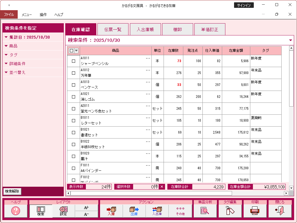 かるがるできる在庫26の操作画面集は以下からご覧ください