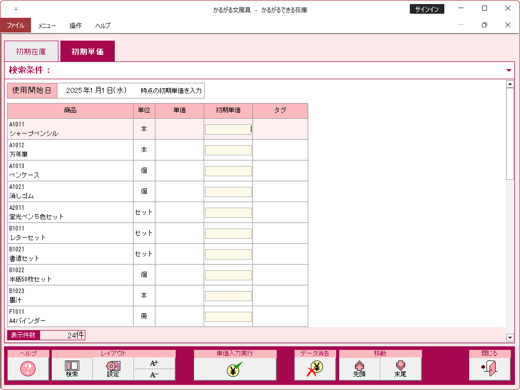 初期単価入力