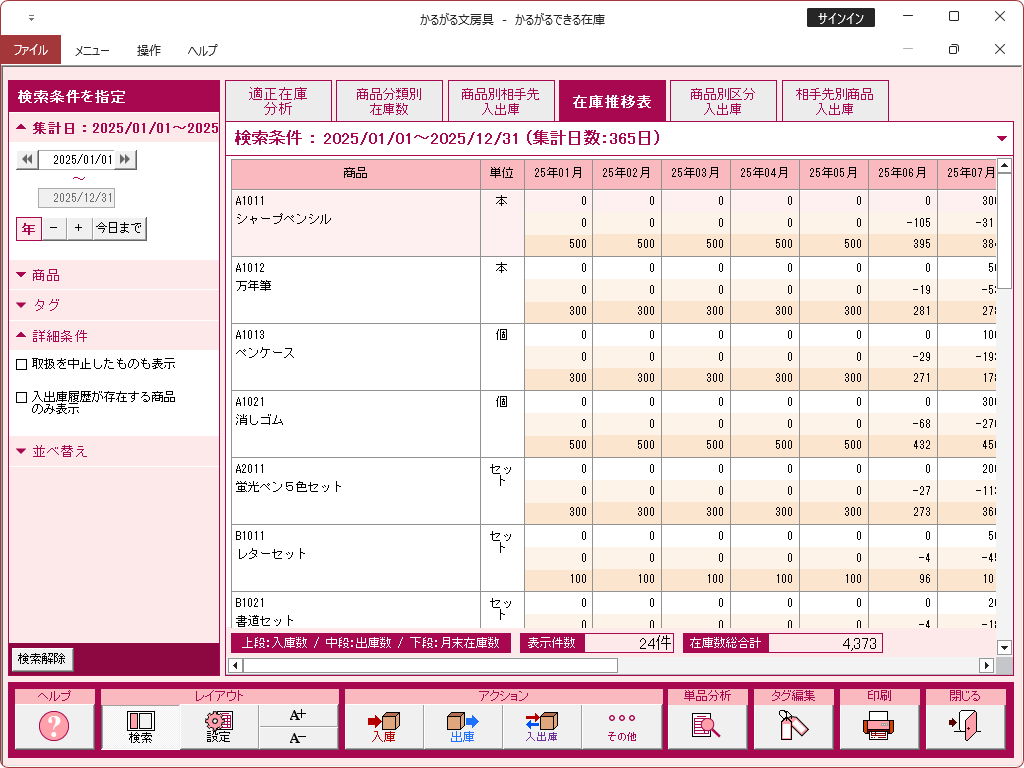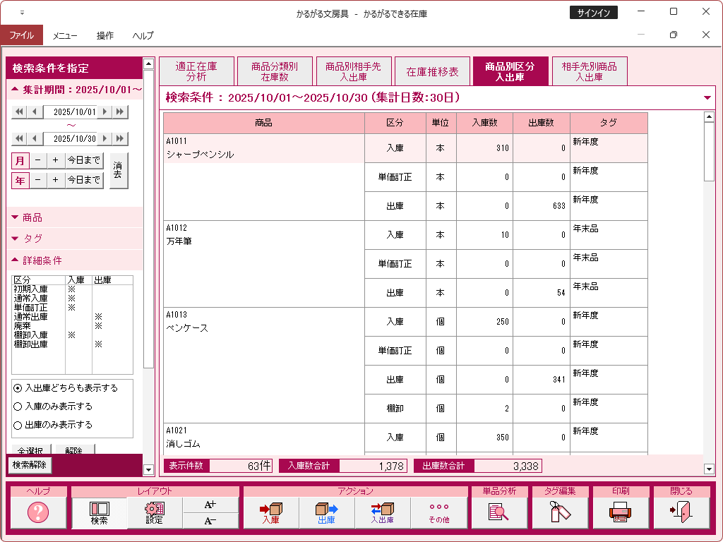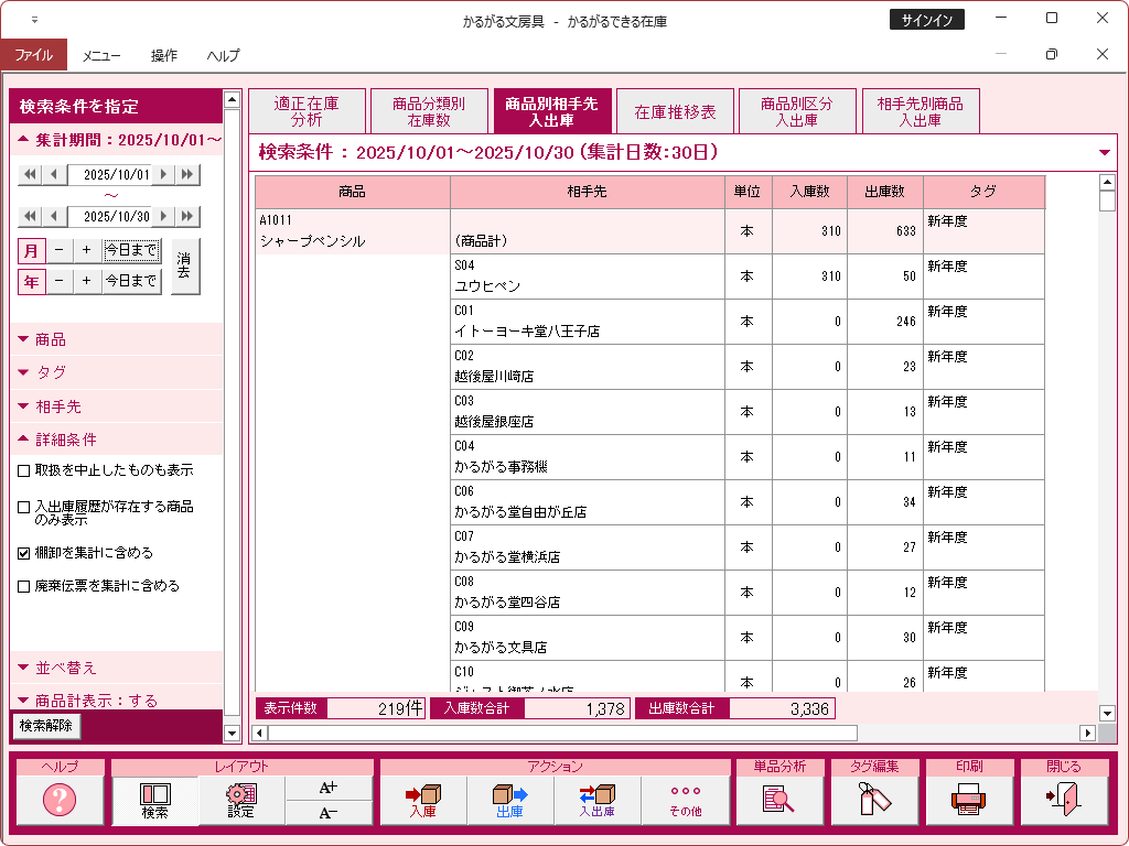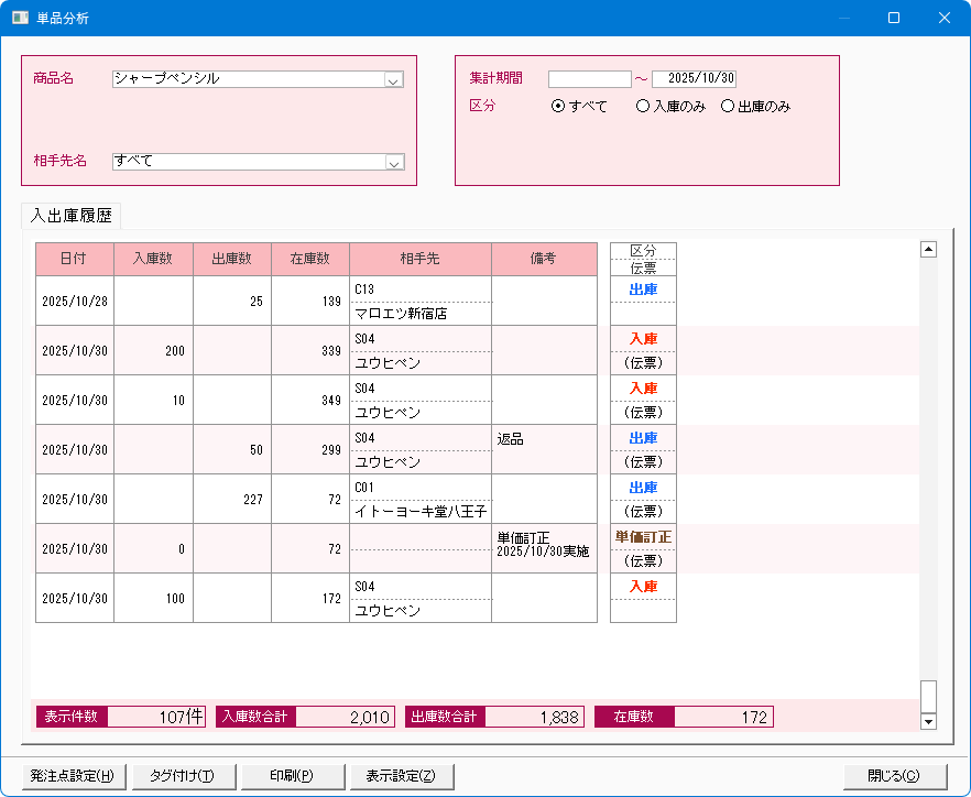 単品分析(入出庫履歴)