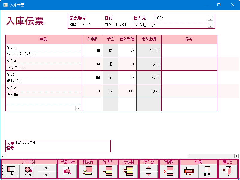 入庫伝票入力