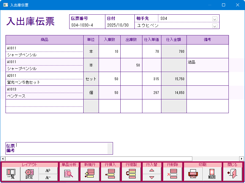 入出庫伝票入力