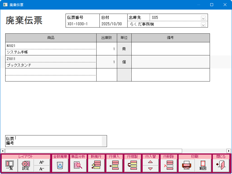 廃棄伝票入力