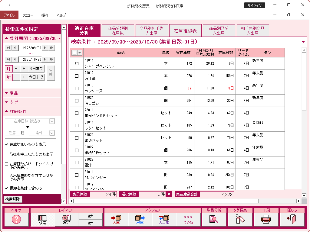 集計表・適正在庫分析