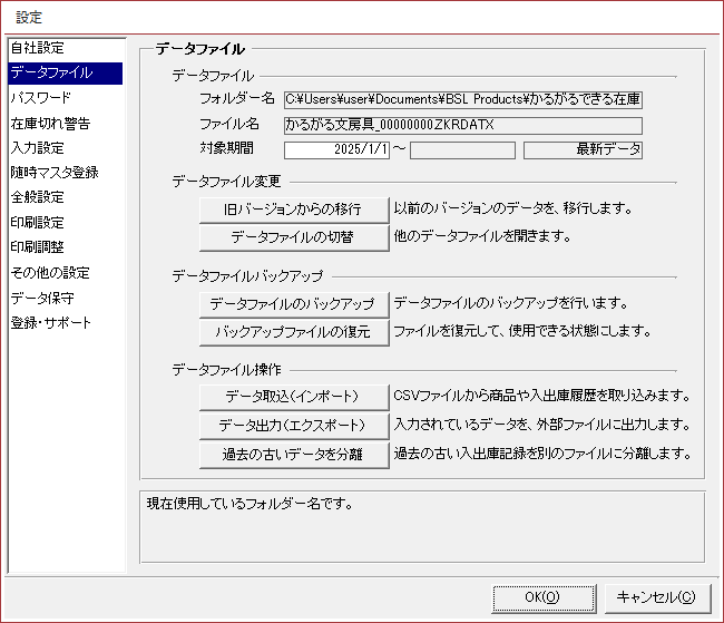 設定-データファイル