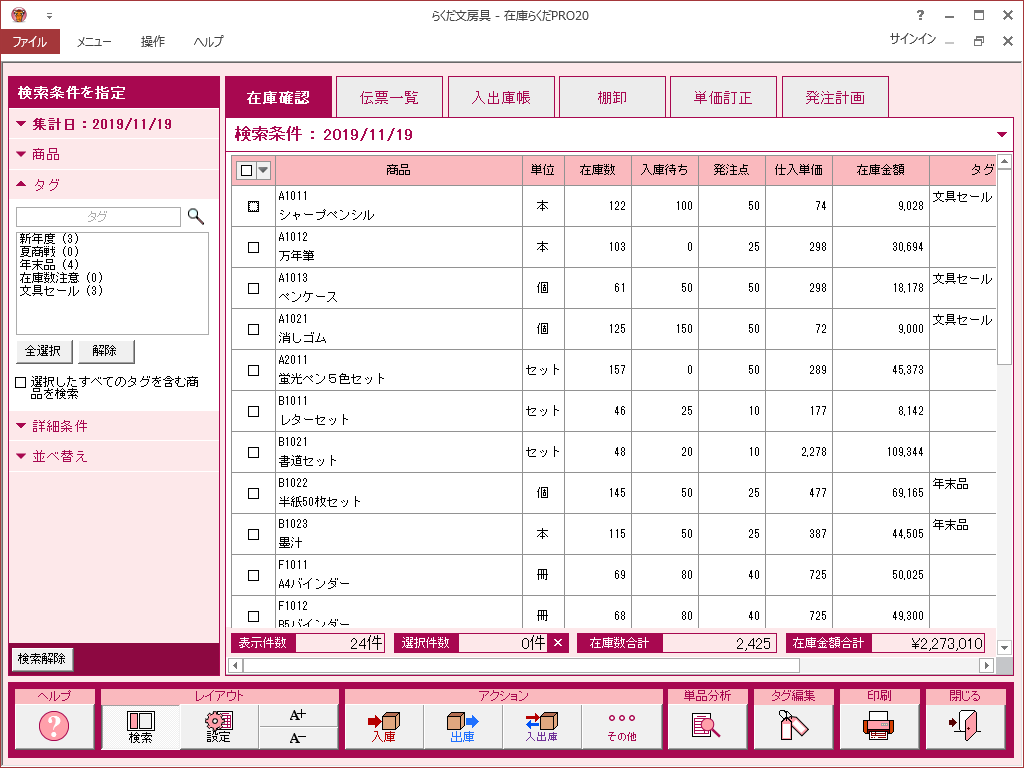5. 在庫らくだプロ 操作画面集