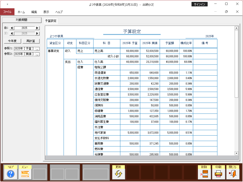 事業で重要な予算計画。科目ごとに予算額を入力するだけで、簡単に予算の計画作成ができます。