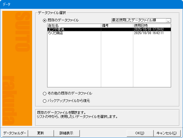 複数の事業所を運営している場合には、それぞれの事業所ごとにデータファイルを作成し、データファイルを切り替えて管理できます。